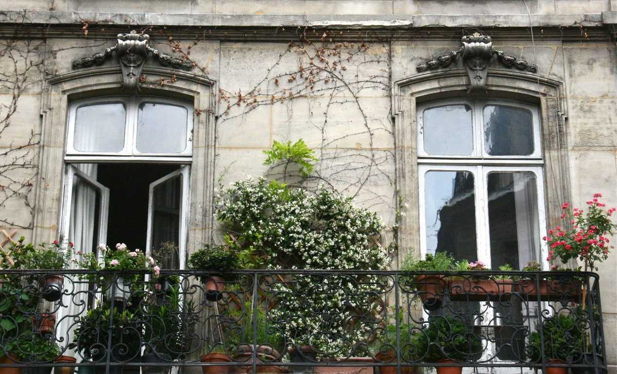 Большинство французских балконов и их перила и установка выполнены на заказ. И это вполне объяснимо, ведь ажурное плетение из металла поддается только специалистам. Поэтому его заказывают у кузнечных дел мастеров, с которыми тщательно продумываются все детали конструкции – от размеров площадки, до мест крепления горшочков для цветов.