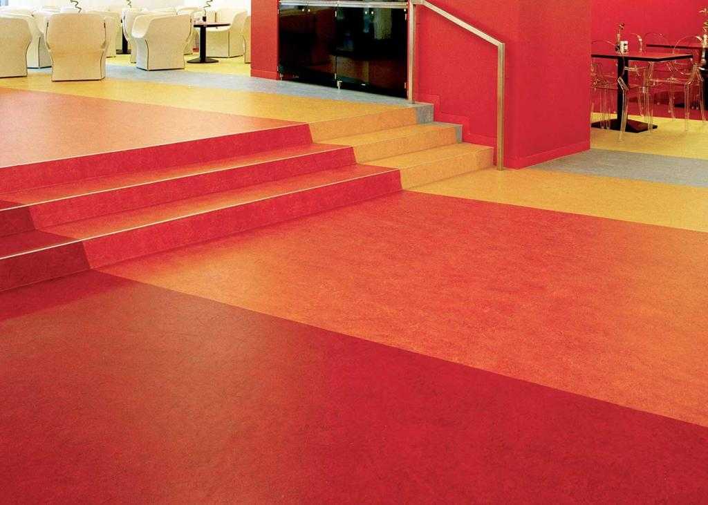 Какой линолеум с защитным слоем лучше постелить в офисе? Самые крепкие из всех классы от 41-го до 43-го, они рассчитаны на огромные перегрузки, при этом остаются в своем исходном состоянии, не деформируясь. Гомогенное покрытие имеет рисунок, проходящий через всю толщину слоев, поэтому подобные изделия намного дольше сохраняют собственный начальный внешний вид. В отличие от бытового линолеума, толщина защитного слоя (транспарента) у коммерческого будет достигать значений 0,8-1 мм, а чем толще такой слой, тем более тонкой будет основа. Антистатическое покрытие позволяет стелить его в серверных комнатах с большим количеством электрооборудования. Он устойчив к загниванию, не деформируется, выдерживает тяжелые предметы. Покрытия с антибактериальной поверхностью предпочитаемы в клиниках.