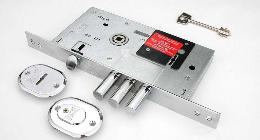 В зависимости от вида замка он может иметь один, два или три ригеля. Преимущественно используются механизмы с двумя запирающими брусками.