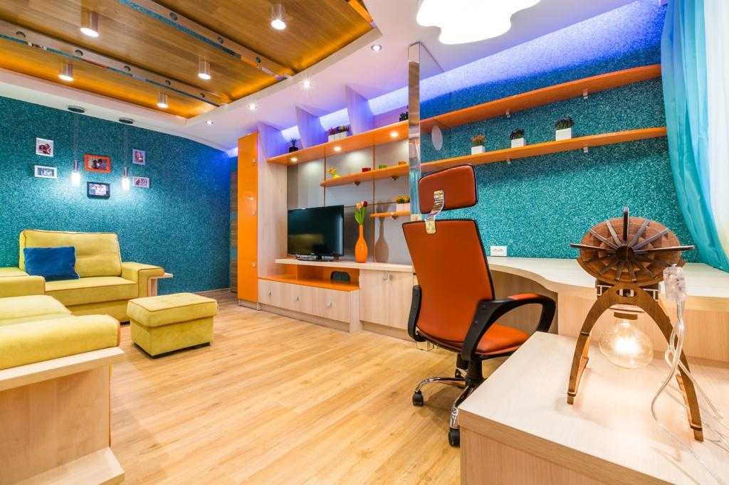 Такие уникальные декоративные обои Silkcoat можно использовать и в оформлении кабинета. В этой комнате можно украсить не только стены, но и поверхность потолка. Это придаст помещению интересный вид. Для украшения кабинета подойдут обои, которые входят в коллекции «Оптима» и «Стандарт». Этот вариант является наиболее бюджетным из линейки. Оцените результат на фото: