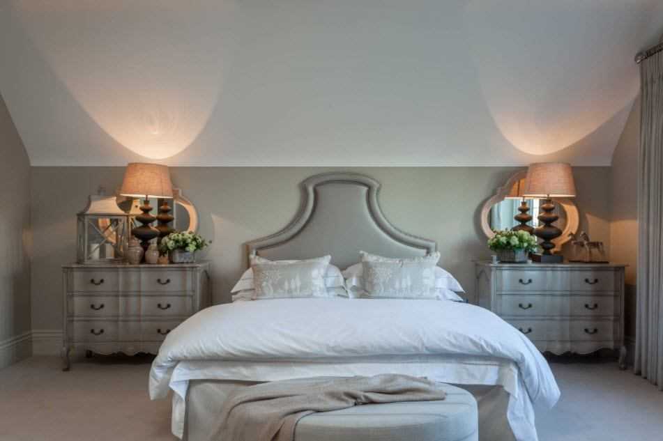 Например, винтажный комод или бархатное бледно-лавандовое кресло у туалетного столика непременно будут приковывать внимание, а диван или обеденный стол кремового цвета станут скорей продолжением дизайнерской задумки