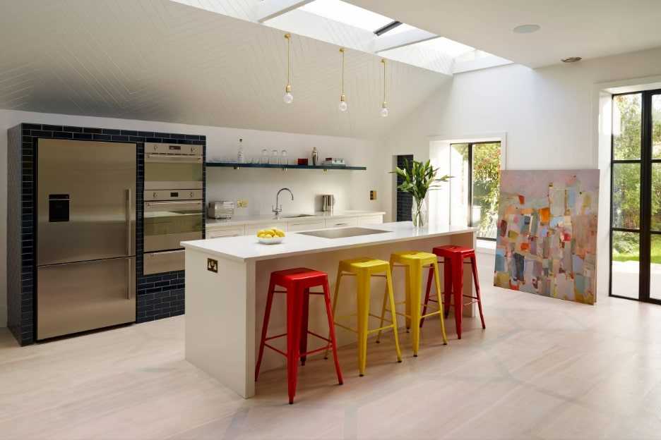 - Поставьте барную стойку сразу у входа на кухню, вплотную к плите, мойке или холодильнику — нарушьте кухонный треугольник. Вы сразу же оцените, как неудобно мимо нее двигаться и как дискомфортно сидеть.