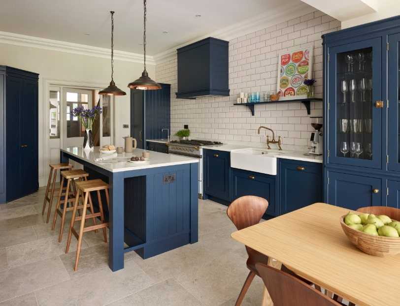 Дерево станет хорошим выбором для помещения, оформленного в классическом стиле. Для просторной кухни имеет смысл приобрести мебель, украшенную резьбой, мозаичными элементами или со стеклянной поверхностью.