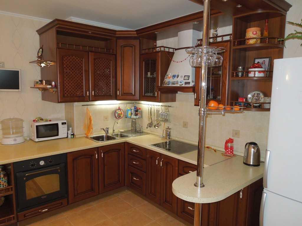 - если на кухне выдержан классический стиль, то имеет смысл выбрать габаритную деревянную конструкцию с отделениями и шкафчиками;