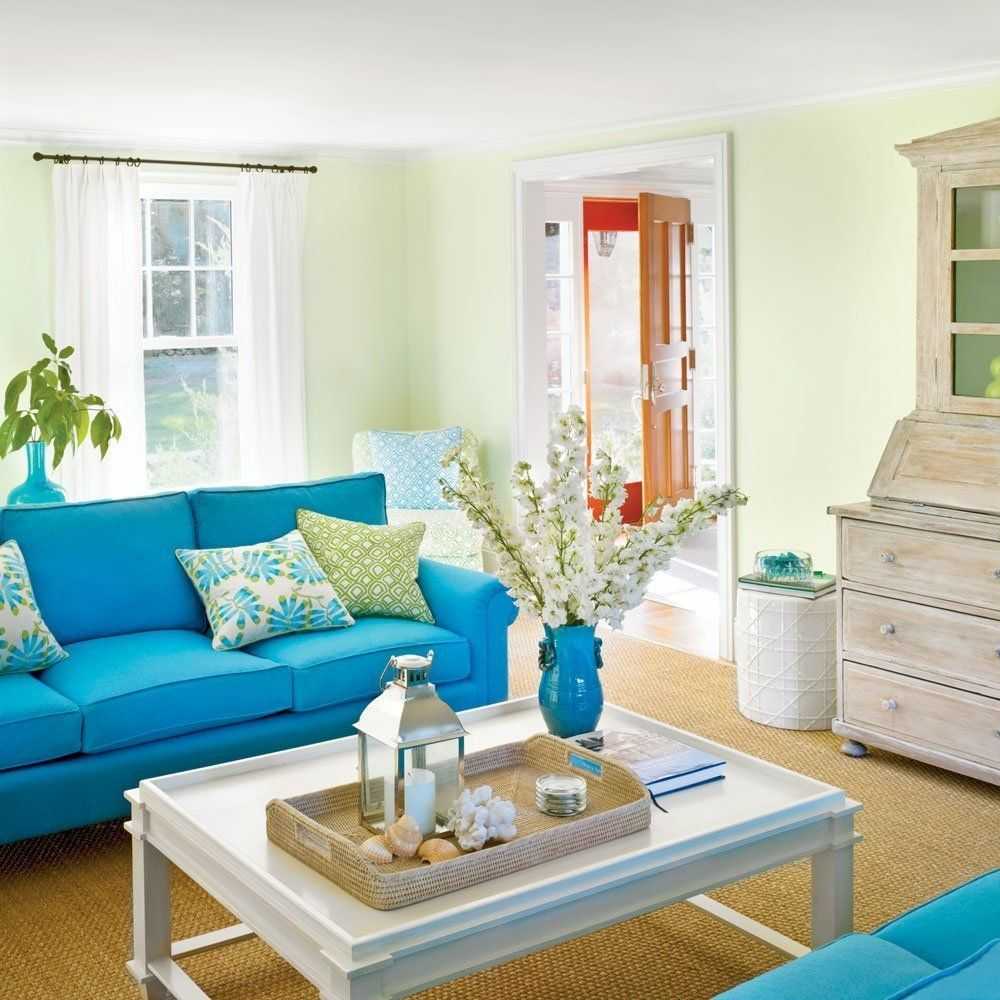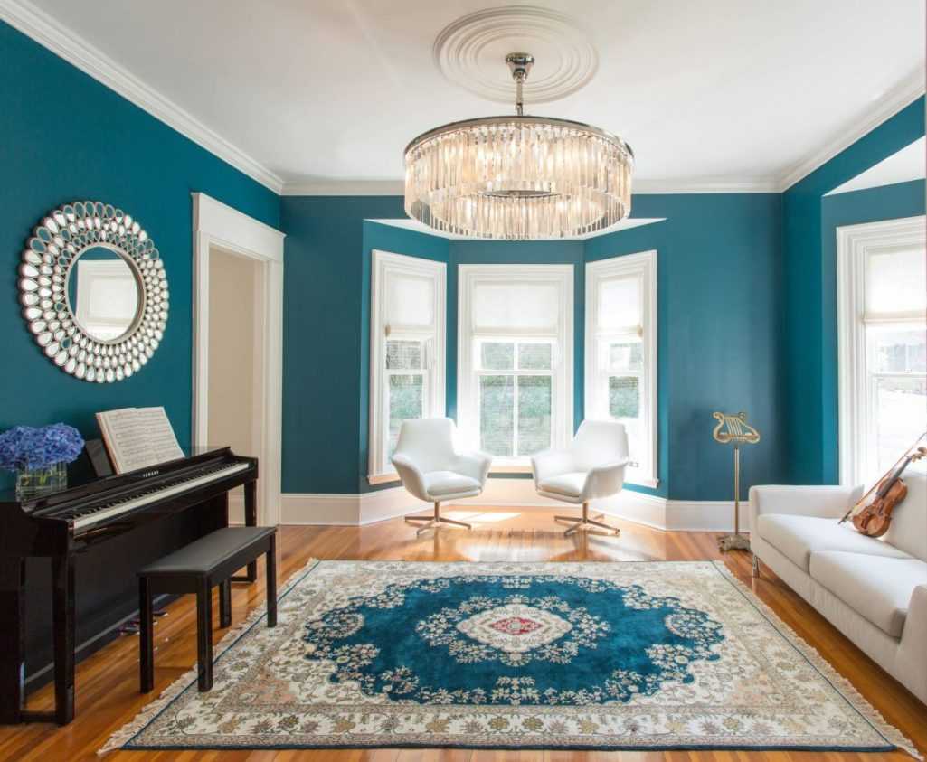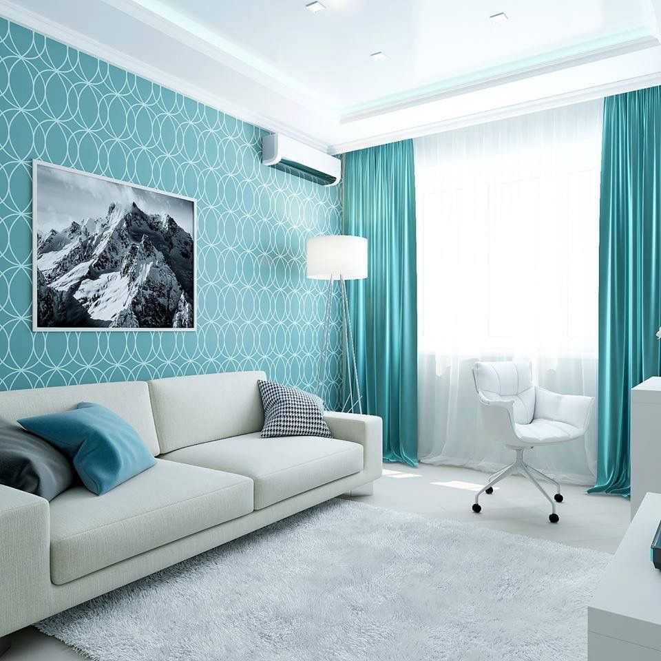 Бирюзовый цвет в интерьере гостиной: оригинальные идеи оформления комнаты