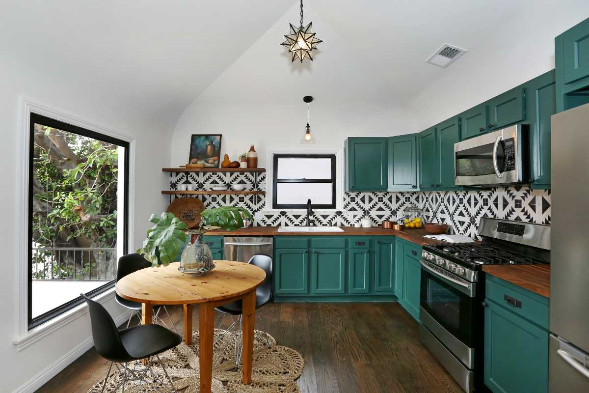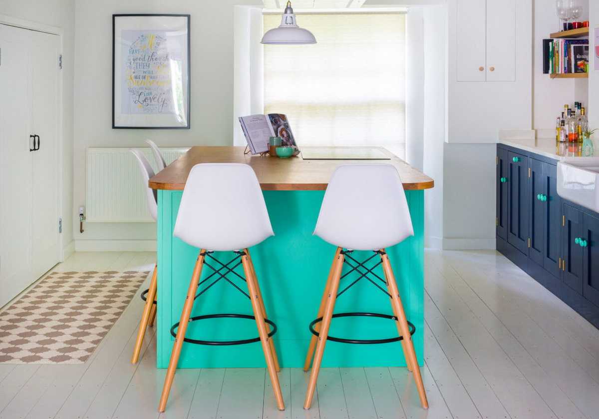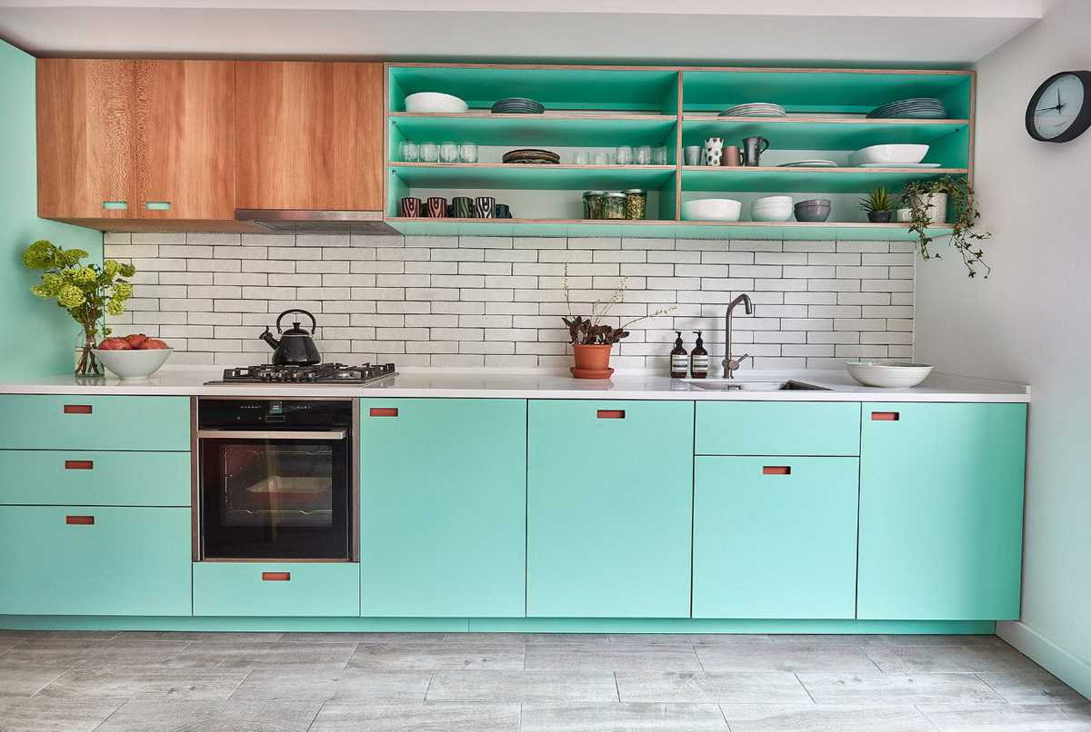 Бирюзовый цвет будет гармоничным решением для вашей кухни, если грамотно подобрать цвета-компаньоны.