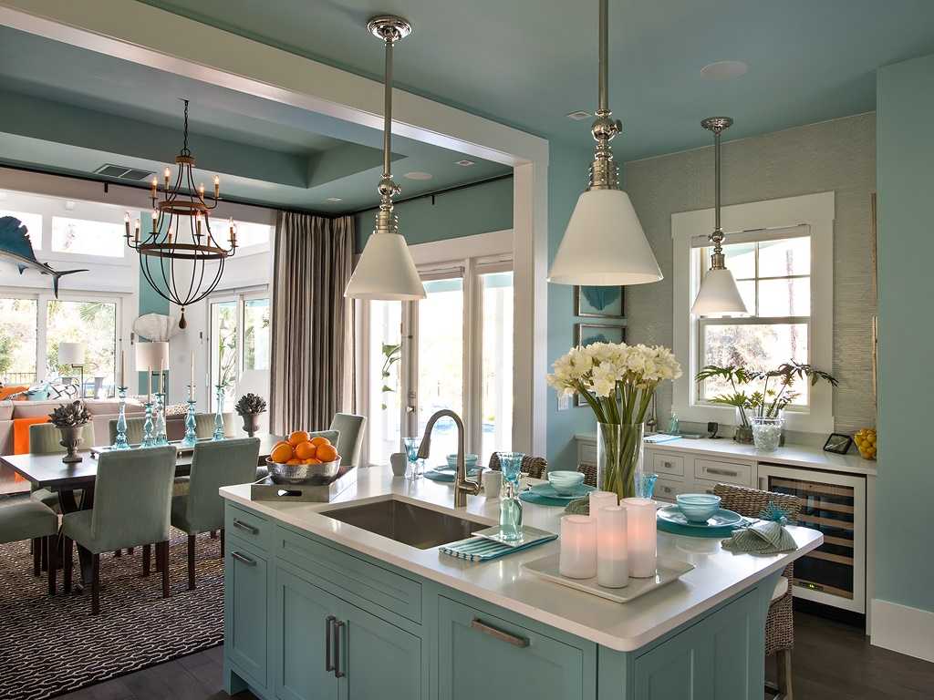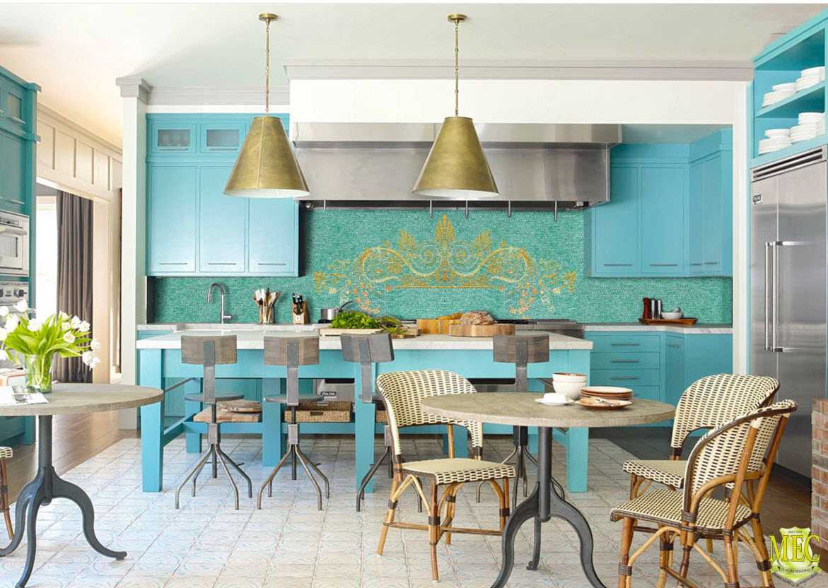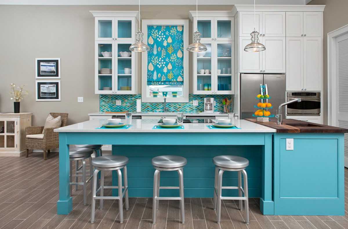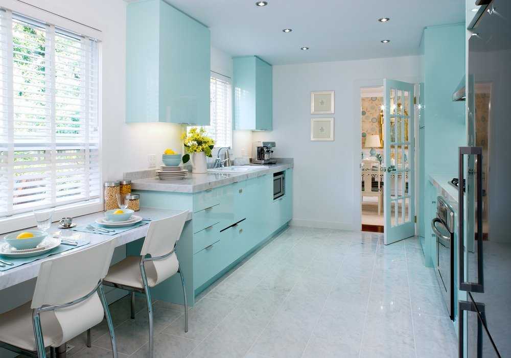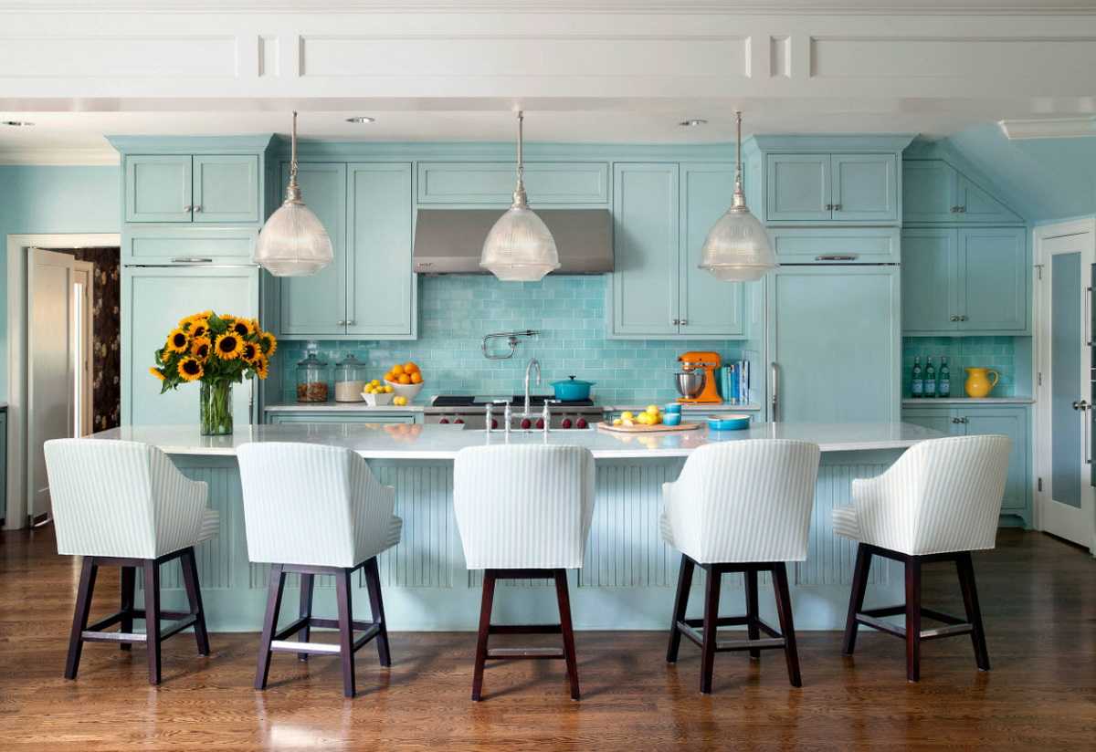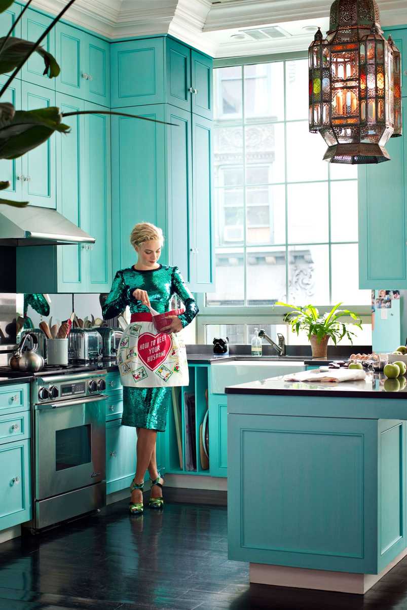 Бирюзовый цвет в интерьере кухни: идея средиземноморского стиля
