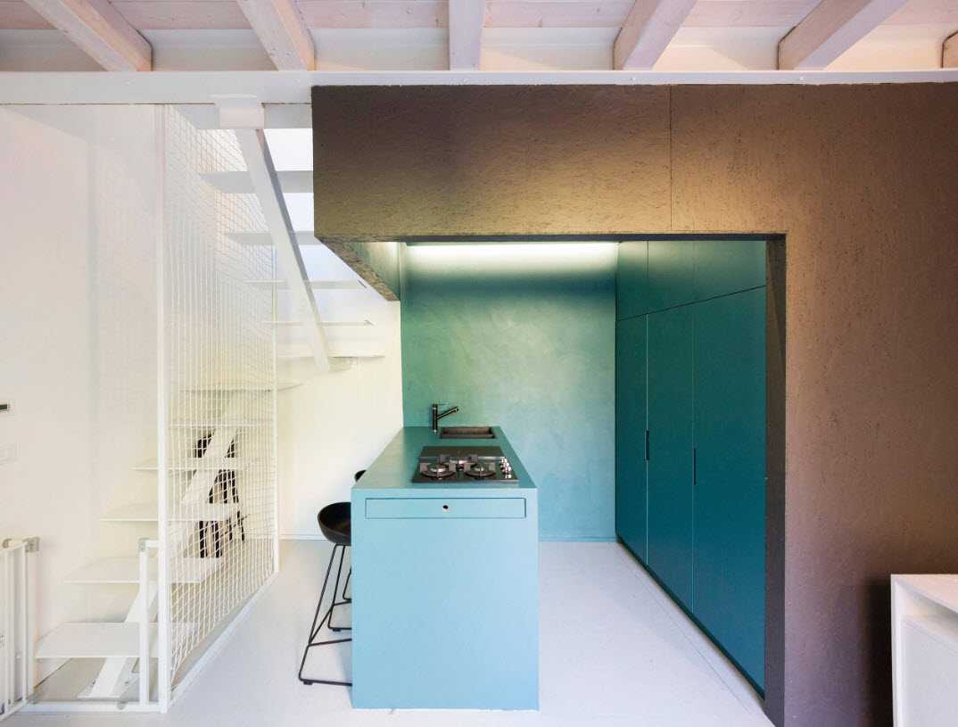 Бирюзовые тона можно использовать для разных уголков кухонного пространства