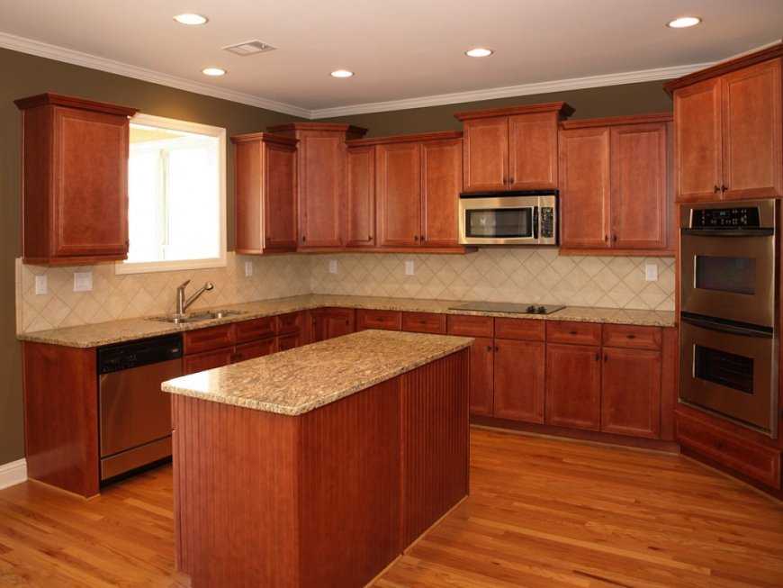 Что касается самого напольного покрытия, то максимально практичны для кухни керамическая плитка с матовой (шершавой) поверхностью, ламинат или линолеум.