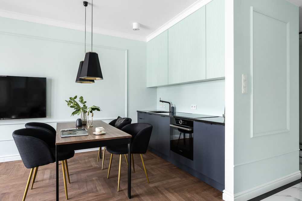 Дизайн проект интерьера маленькой кухни 2021 совмещенной с гостиной комнатой