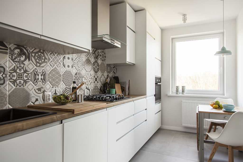 Керамическая плитка — от данного способа отделки стен в небольшом помещении лучше отказаться, так как плитка визуально сделает кухню еще меньше и создаст в ней эффект коробки. Использовать керамическую плитку можно лишь при отделке кухонного фартука и рабочей зоны.