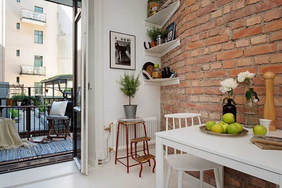 - Установка распашной массивной двери, которая при открывании занимает часть площади кухни;