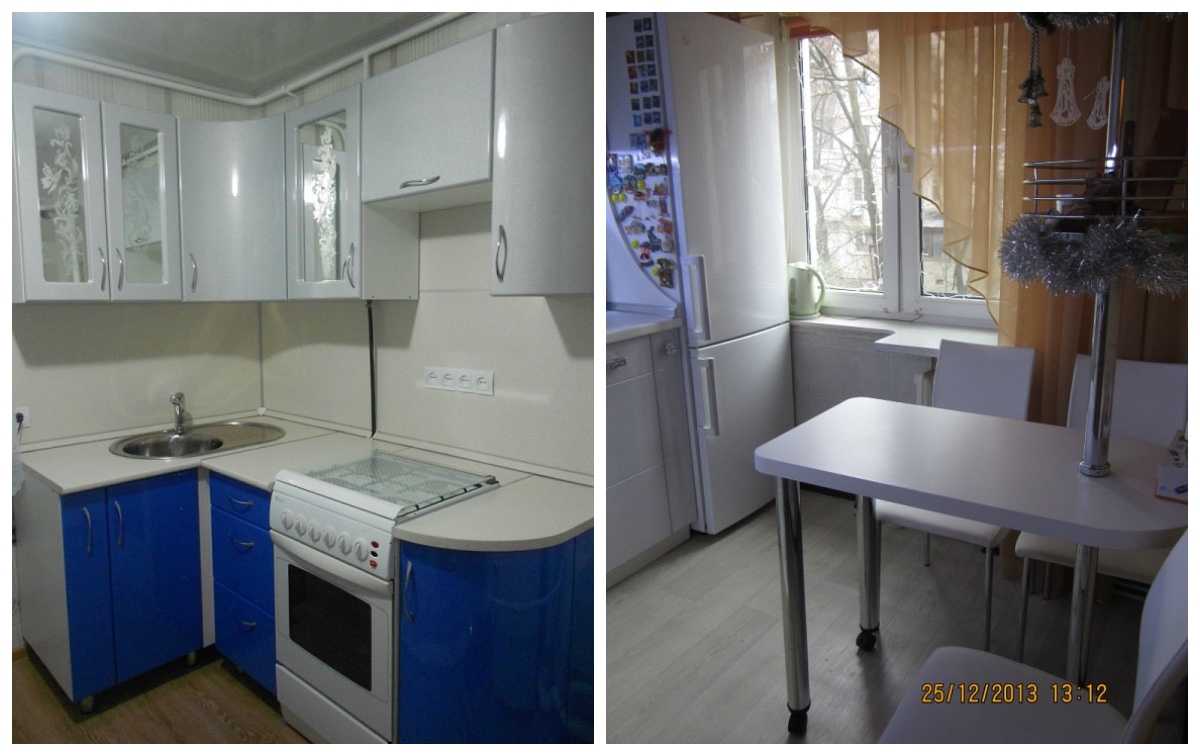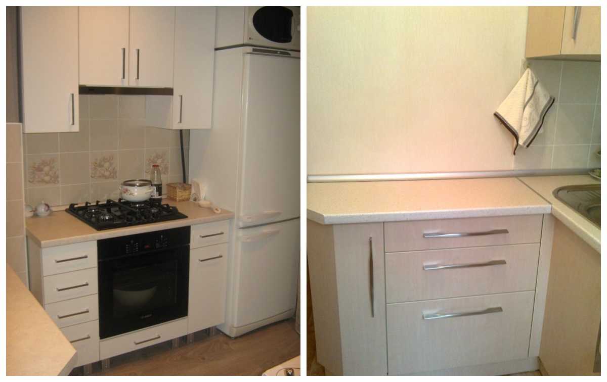 У двери — это место тоже довольно популярно. Оба варианта отлично подходят для установки холодильника. Чтобы между ним и гарнитуром не было зазоров, рекомендуется заказывать мебель для кухни-брежневки, выполненную по индивидуальным параметрам. Тогда все предметы отлично впишутся в интерьер, и даже самое небольшое помещение станет удобным и комфортным.