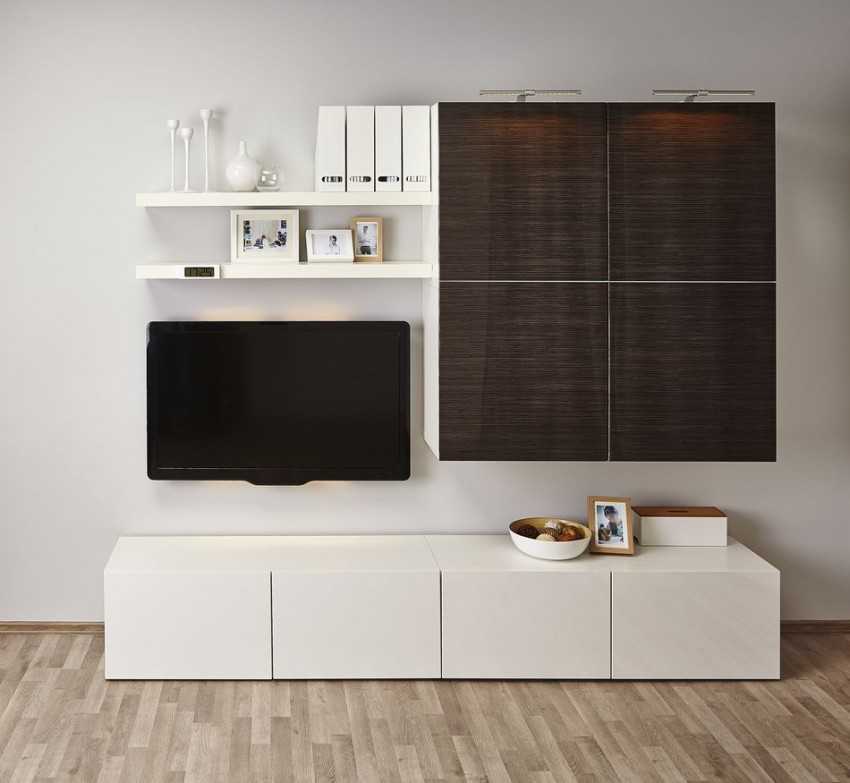 Модульные системы идеально впишутся в гостиную, особенно, если размер помещения не очень большой. Остановитесь на светлом дизайне с закрытыми секциями хранения горизонтального типа. Постарайтесь оставить стену над БЕСТО свободной. Так Ваше пространство визуально будет казаться больше и не будет ощущения захламлённости.