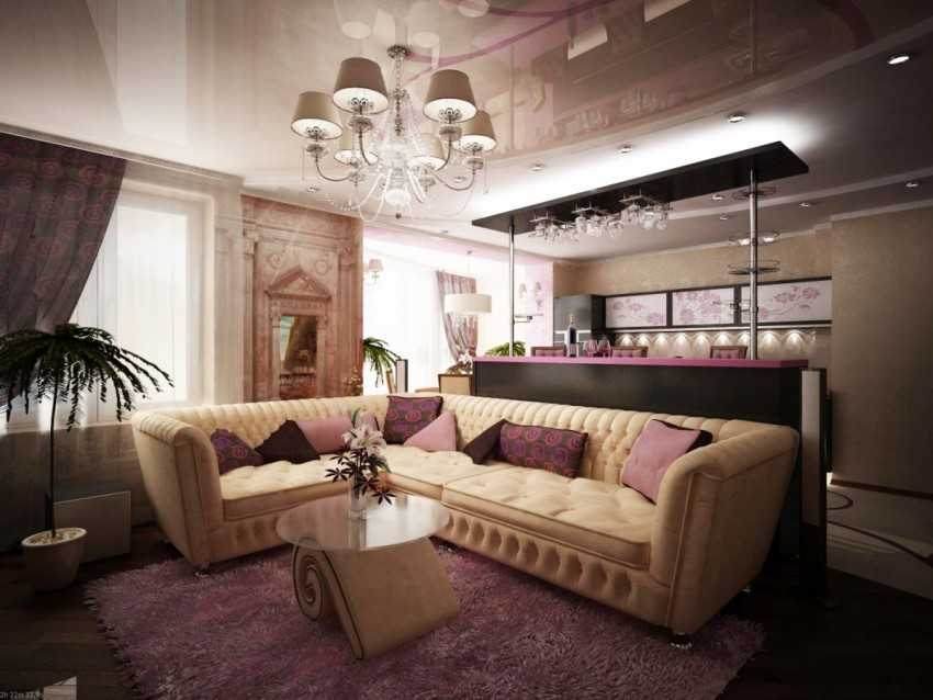Важно! На ковре должны умещаться диван, стол, кресла. Размер меньше дивана выглядит куце
