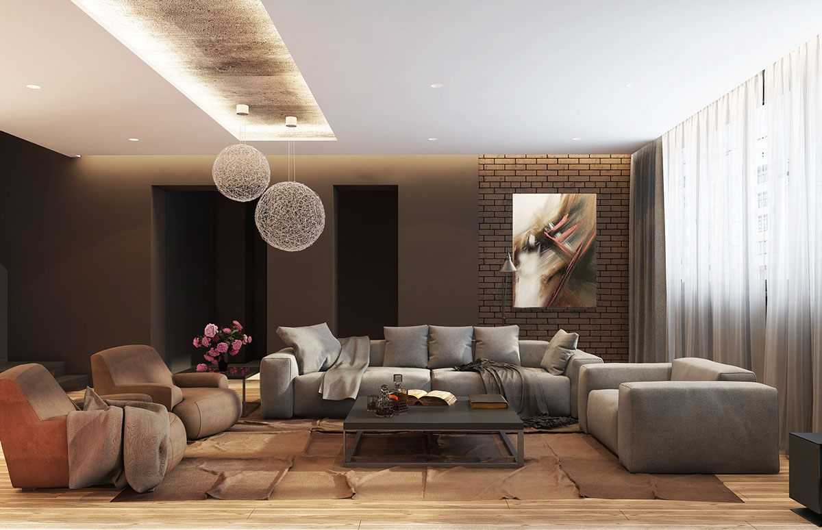 Фото 9 — Интерьер зала с использованием коричневых оттенков