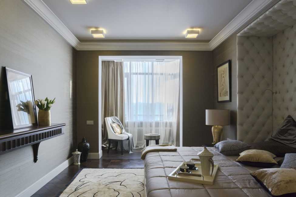 Этот стиль считается максимально приспособленным к комнате отдыха. Строгие формы мебели, интересные, но сдержанные украшения хорошо впишутся в интерьер. Тумбочки, комоды и шкафчики стараются приобретать из натурального дерева. Они могут иметь округлые формы без присутствия острых углов. Стены спальни в зоне изголовья кровати стараются отделывать обоями с имитацией шелка и другого богатого текстиля. По обеим сторонам располагают ночники. Одну из длинных стен в комнате можно полностью заставить мебелью.