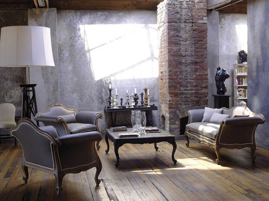В старинных гостиных всегда были: кушетка канапе, роскошный комод, 2-3 пуфа, низкий столик, консоль. Большую площадь занимали 1-3 дивана и минимум 2 кресла с подушками.