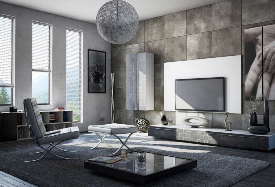 Какую бы комнату Вы не оформляли, мебель в ней должна смотреться уместно и грамотно. Здесь нельзя допустить ни малейшей ошибки, иначе все труды окажутся напрасными. Кроме того, что присутствует лаконичность, геометричность, обязательна функциональность. Если у нее будут свойства релаксации, умиротворения, это будет только преимуществом данной мебели. Отличны варианты модульной современной мебели. Фасады – глянец, матовые, с металлическими/стеклянными деталями. Формы мягкой мебели обязательно строгие, прямоугольные, в однотонной цветовой гамме.