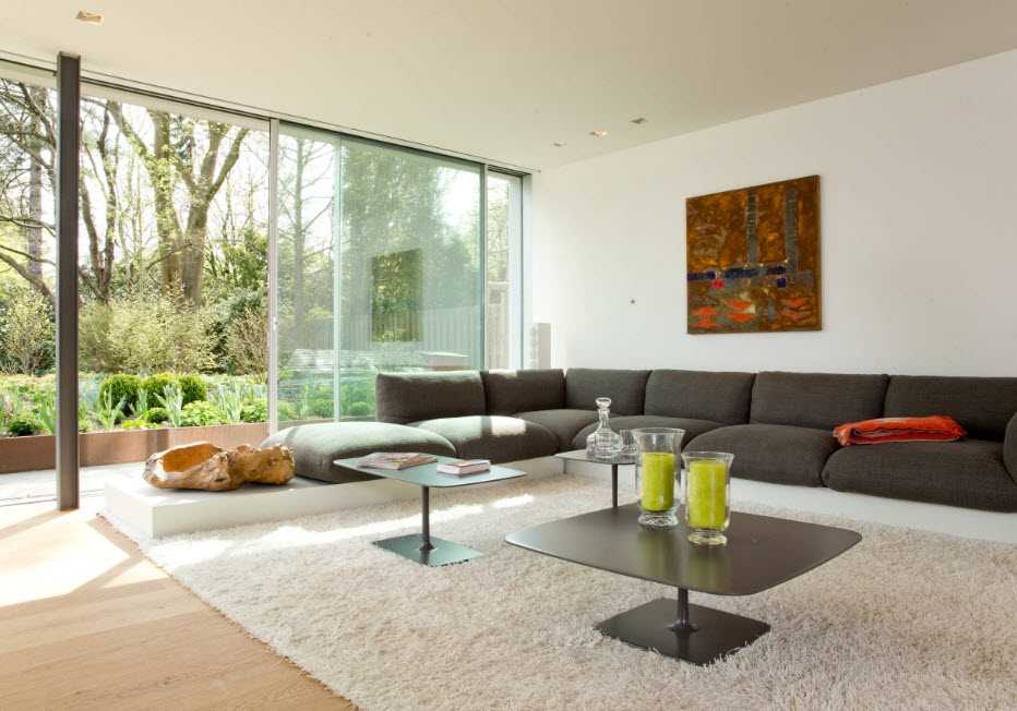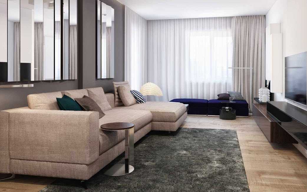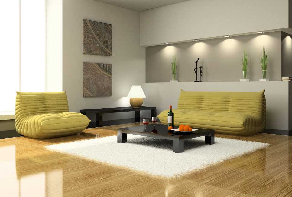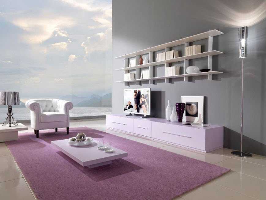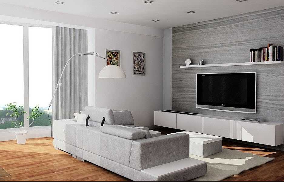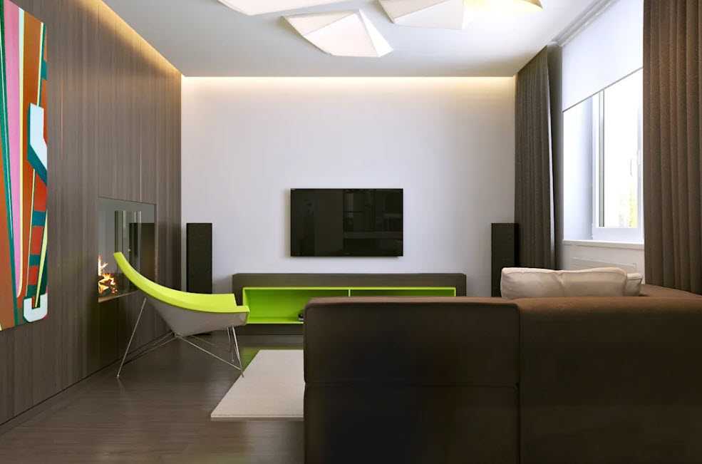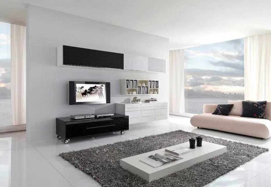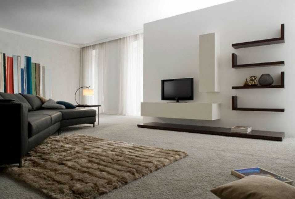 Интерьер гостиной в стиле минимализм предполагает минимум каких-либо элементов декора