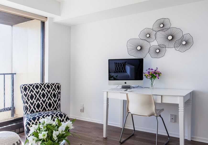 Светлые тона: молочный, белый, серый в сочетании с контрастным черным или разбавленными тонами, как нельзя лучше настроит на рабочую атмосферу.