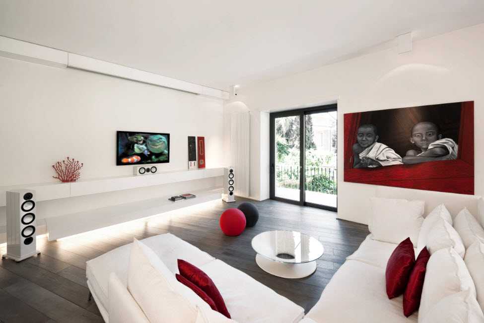 Форма и цвет аудио- и видеосистем идеально соответствуют стилю минимализм.