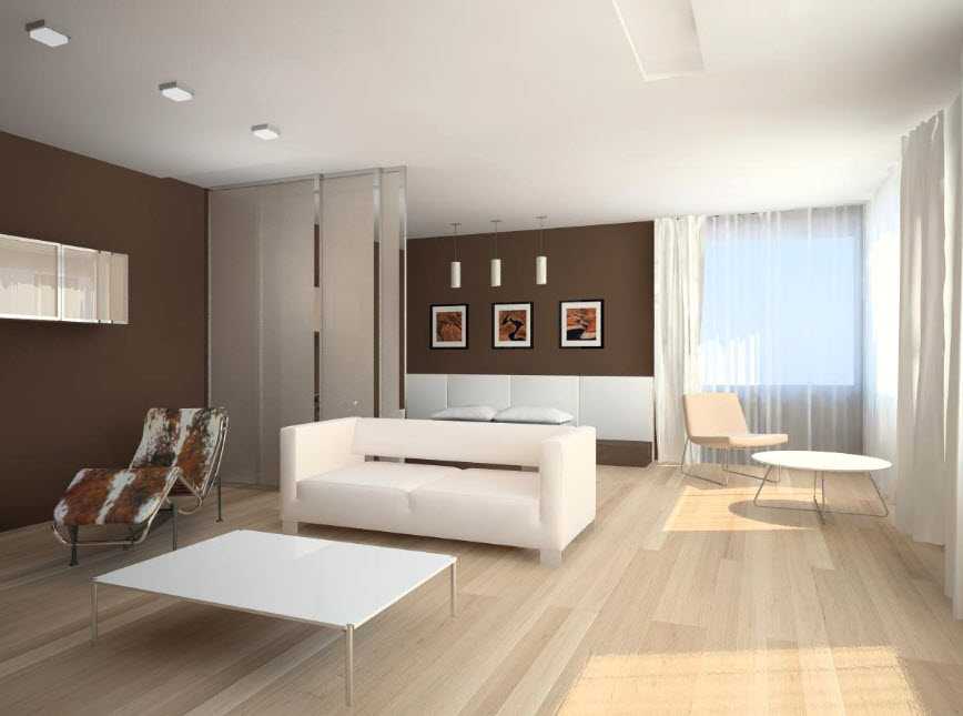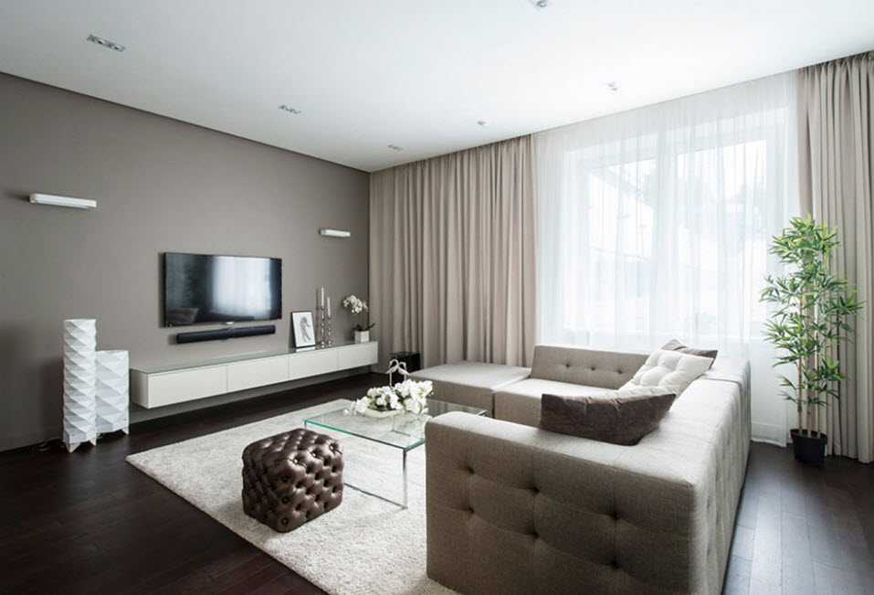 Минималистичный дизайн – заложник монохромной палитры, которая делает его сдержанным, но вовсе не скучным. Возможность филигранно комбинировать гармоничные цвета позволяет дизайнеру создавать современные и приемлемые для любого помещения интерьерные концепции. Зал обычно является одной из самых больших комнат в квартире, для которой подходят светлые оттенки. Для воссоздания атмосферы минимализма в интерьере гостиной уместно использовать один из нескольких характерных для стиля цветов: