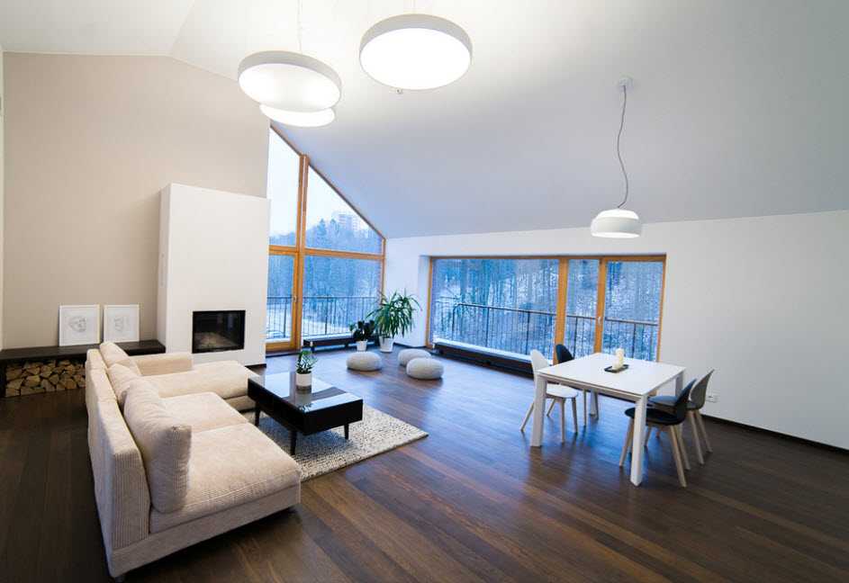 2.Максимум натурального освещения, поступающего из огромных, в идеале – ничем не украшенных окон от пола до потолка. Впрочем, неброский оконный декор ввиду наших представлений об уюте также допустим.