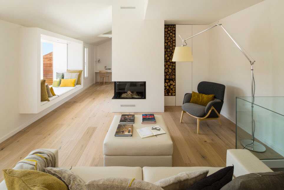 — по возможности максимально расширяется пространство: сносятся перегородки, которые можно снести, расширяются окна, объединяются комнаты и т.д. Например, в следующем интерьере мы видим объединенную кухню-гостиную, две функциональные зоны не разделены перегородками: