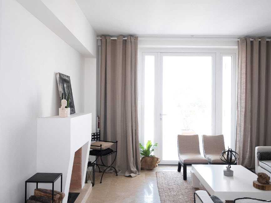 Классические портьеры совершенно не вписываются в стилистику минимализма