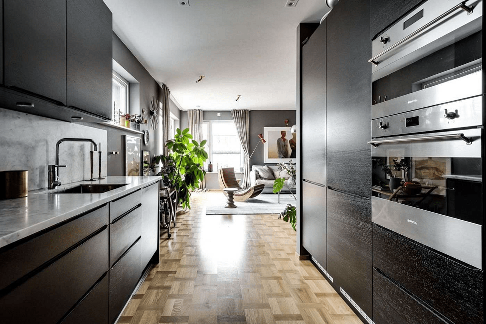 Белоснежные скандинавские маленькие кухни уже несколько приелись. Добавление новых элементов в холодный нордический интерьер позволило реанимировать этот стиль и взглянуть на него по-новому.
