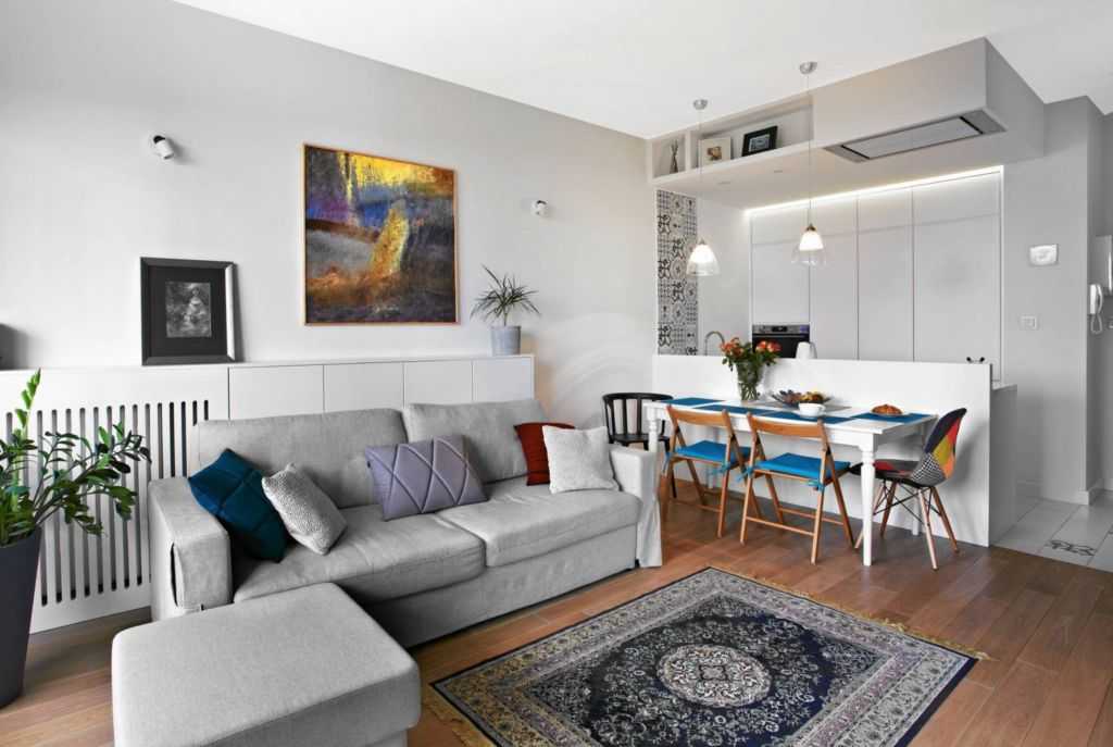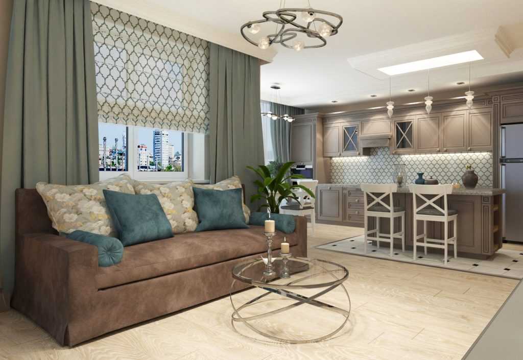 Если гостиная и кухня находятся в одной комнате, это приносит ощущение простора, но в то же время, следует учитывать, что эти две зоны не теряют своей индивидуальности. Эта разница может быть достигнута с помощью подходящего сочетания цветов, мебели и других декоративных аксессуаров. Таким образом, эти две области будут оптически разделены. Используйте контрастные цвета или выберите общую цветовую схему для обеих областей. Цвета могут дать фокус к некоторой области. Если вы остановите свой выбор на белом, желтом или кремовом цвете для покраски кухни, то такой же цвет придадут акценту в гостиной, в виде некоторых картин, ламп, одеял или подушек.