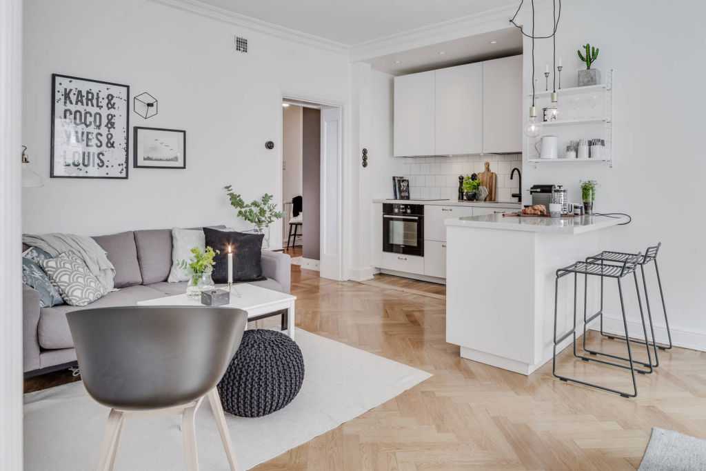 Другой вариант разнообразить скандинавский интерьер – использовать светло-серый вместо белого.