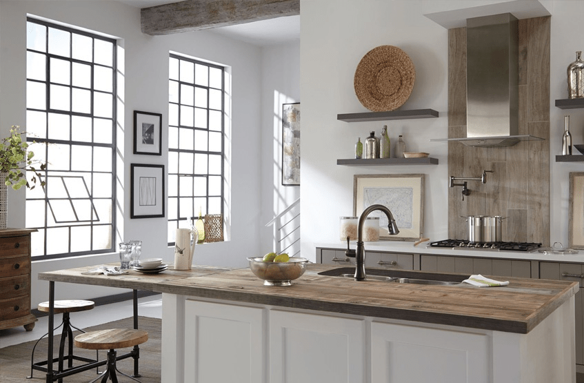 - Хотите сделать кухню визуально более просторной? Повесьте более узкие верхние шкафы или частично от них откажитесь.
