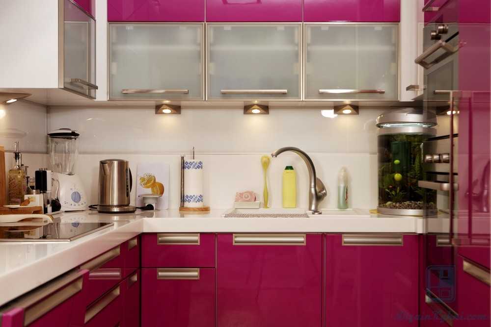 На маленьких кухнях лучше избегать преобладания цвета фуксии, добавляйте его в качестве декоративных акцентов. Столь насыщенные тона способны визуально уменьшить помещение