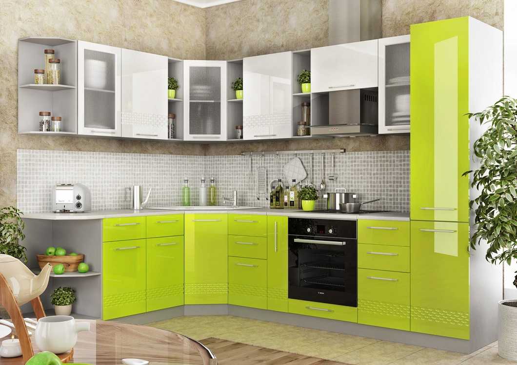 Преимущества и недостатки кухонного гарнитура лаймового цвета