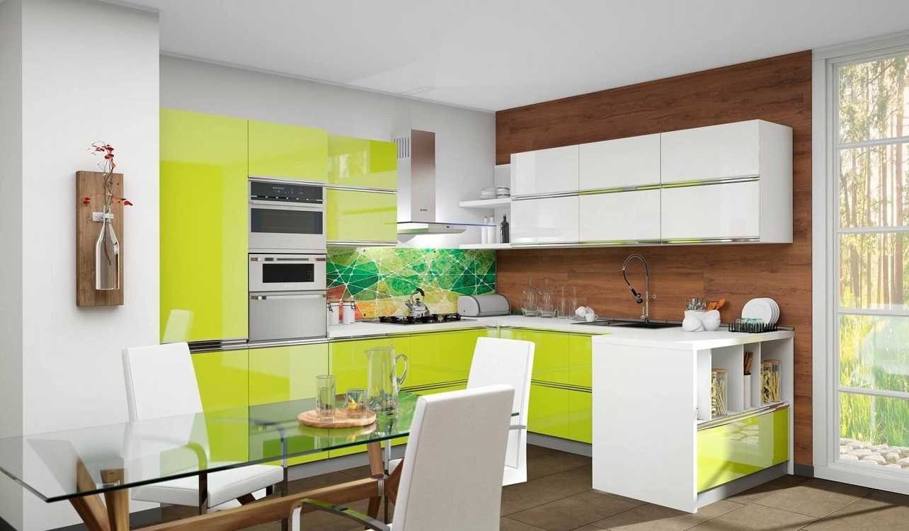 Гарнитур в цвете лайм: как выбрать фартук и отделку обеденной зоны