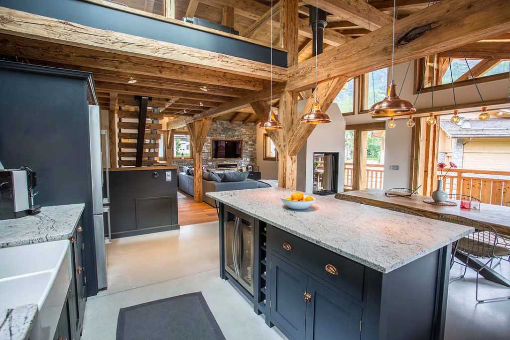 Есть несколько основных элементов стиля шале, которые будут потрясающе смотреться в кухне-гостиной, создавая красивое и привлекательное, но в то же время функциональное помещение, в котором приготовление пищи будет настоящим удовольствием.