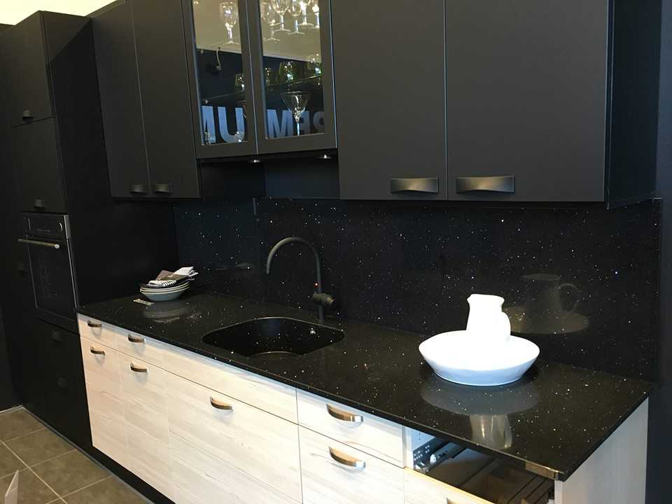 Обычно при проектировании кухни мы сначала выбираем шкафы, плитку, цвет стен и т. д., а затем столешницу. Если вам небезразлична черная столешница, вы должны помнить, что остальная обстановка будет строго зависеть от нее.