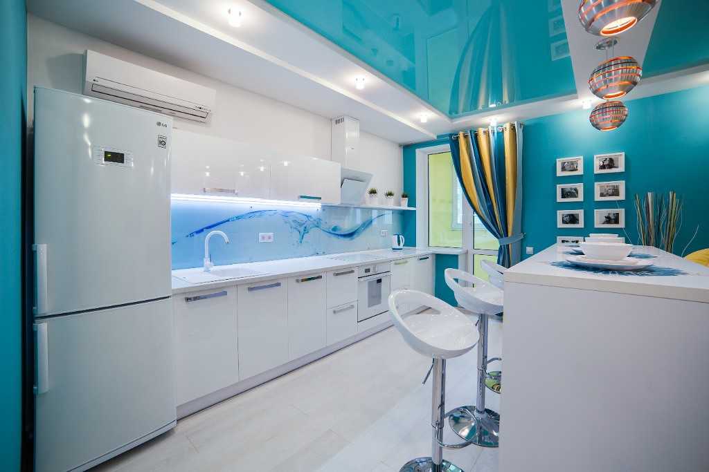 1. Правило трех цветов, на основной из которых выделяют 60% пространства (к примеру, цвету фасадов и стен), на дополнительный – 30% (кухонный фартук), акценты – не более 10% (оригинальная люстра, посуда или стулья). Надо отметить, что сегодня этот постулат расширили до 5 цветов.