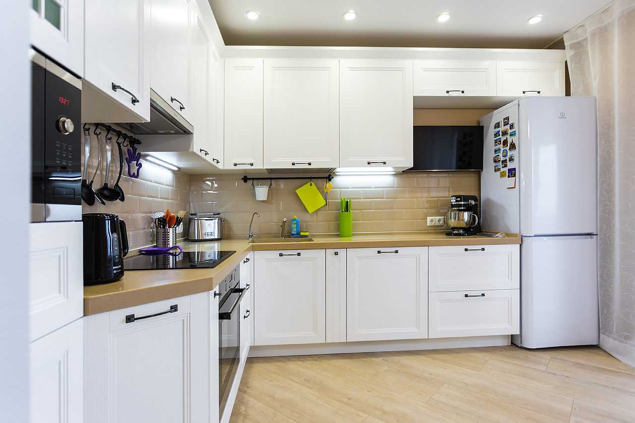 Если удачно расположить все светильники, то белая кухня будет выглядеть так, будто она просто залита светом — именно этого эффекта следует добиваться.