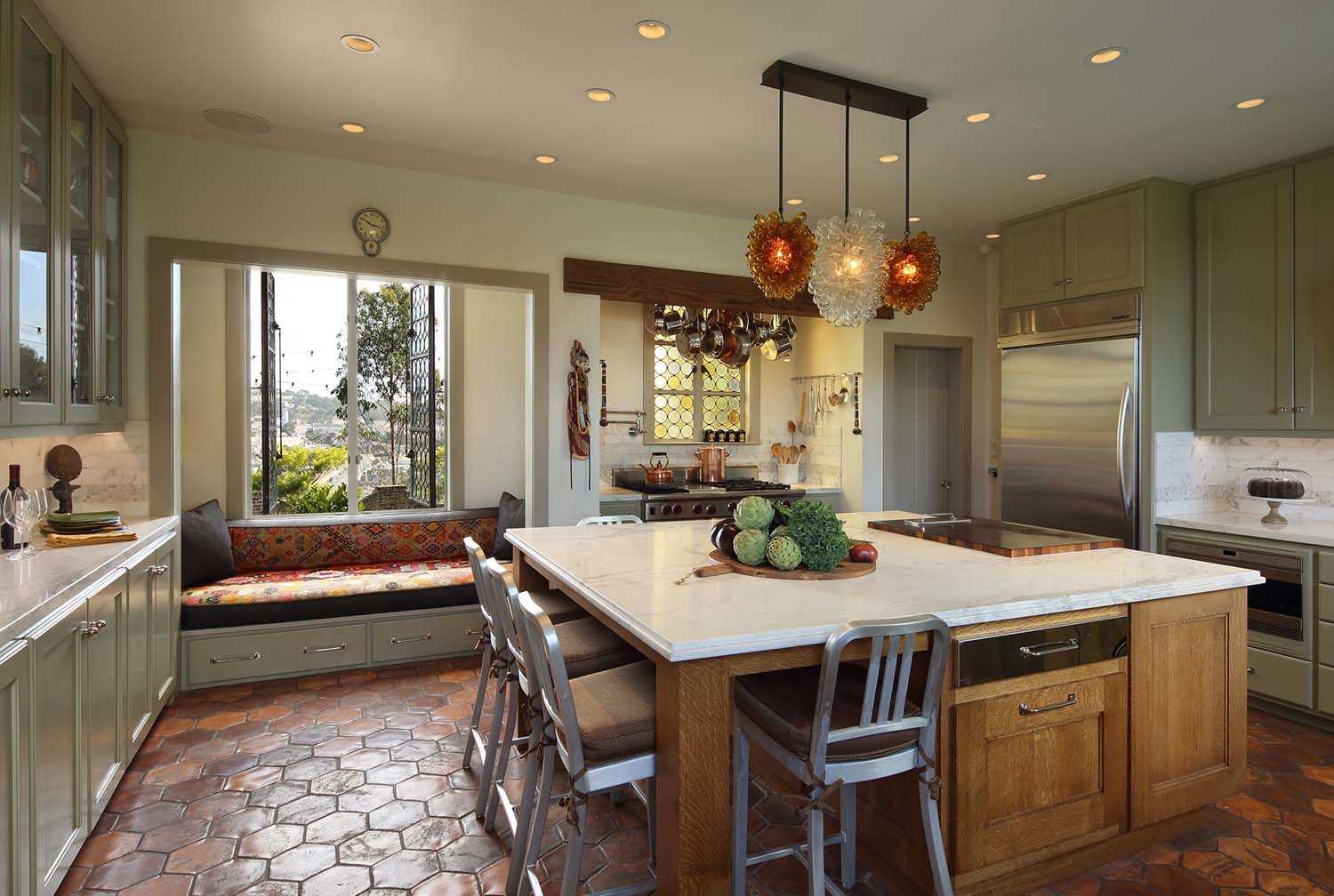 Прекрасное решение для кухонной комнаты в колониальном стиле — плавающий пол. Пожалуй, его можно считать наиболее аутентичным решением.