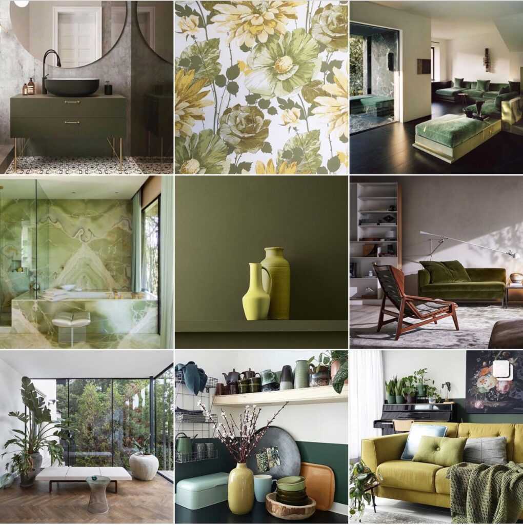 С чем сочетать оливковый цвет стен?