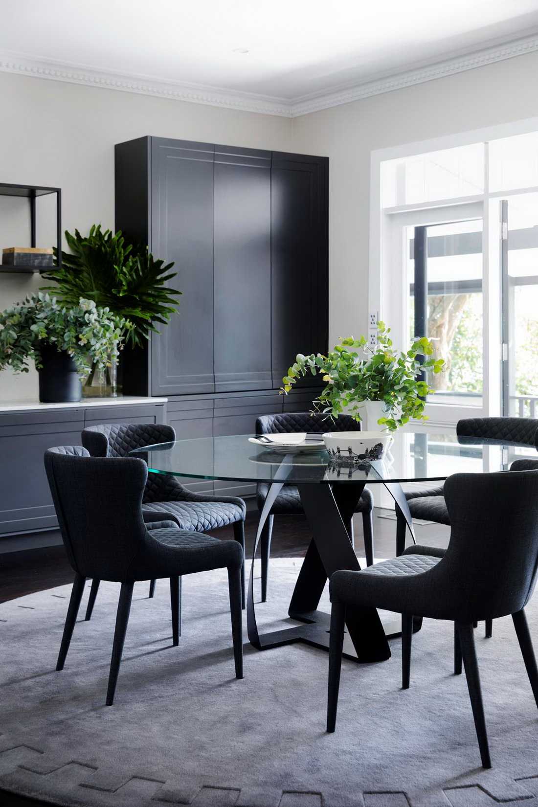 Красиво и эффектно в дизайне кухни 2021 смотрятся стеклянные перегородки, которые могут разделять и зонировать пространство кухни-гостиной или столовой. Будут особенно актуальны для квартир-студий, так как в интерьере выглядят невесомо и легко.
