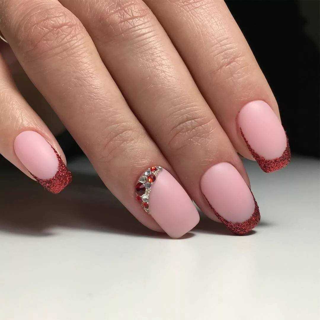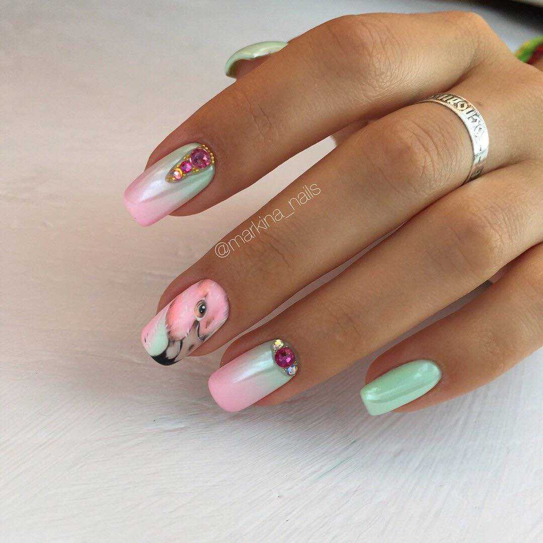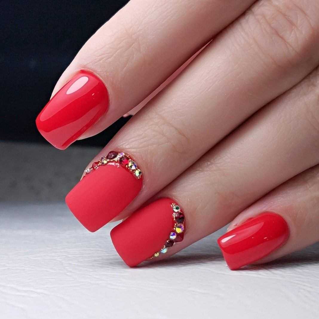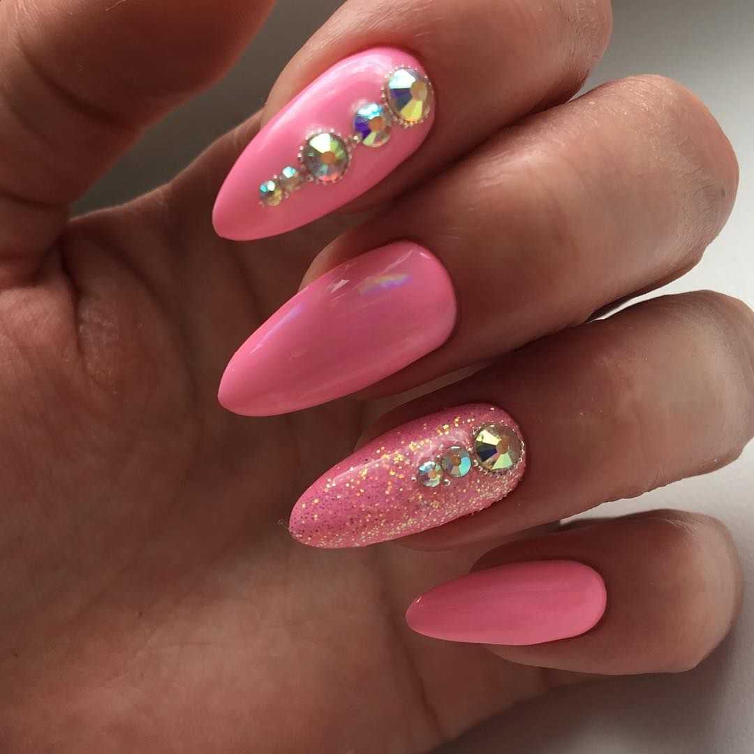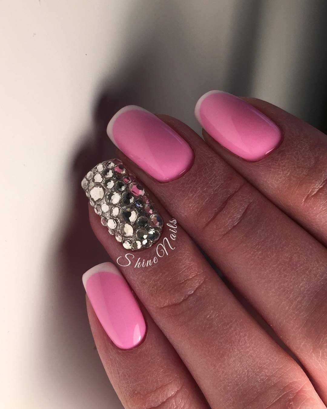 Коралловый цвет – настоящая находка для обладательниц коротких ногтей. Цвет удивительно красиво смотрится на овальных и квадратных ногтях. Стразы на коротких ногтях располагают также как и на длинных. При этом количество материала значительно уменьшается.
