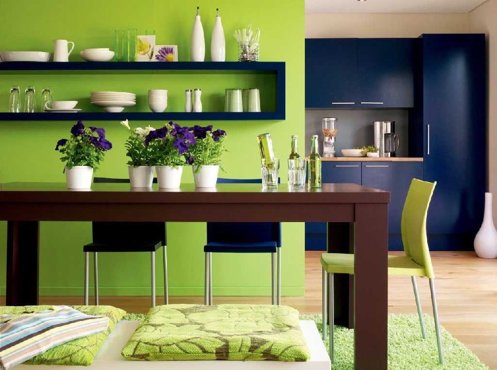 Нет особой необходимости максимально заострять внимание на салатовом цвете. Акцент лучше делать на элементе, входящем в дизайн помещения