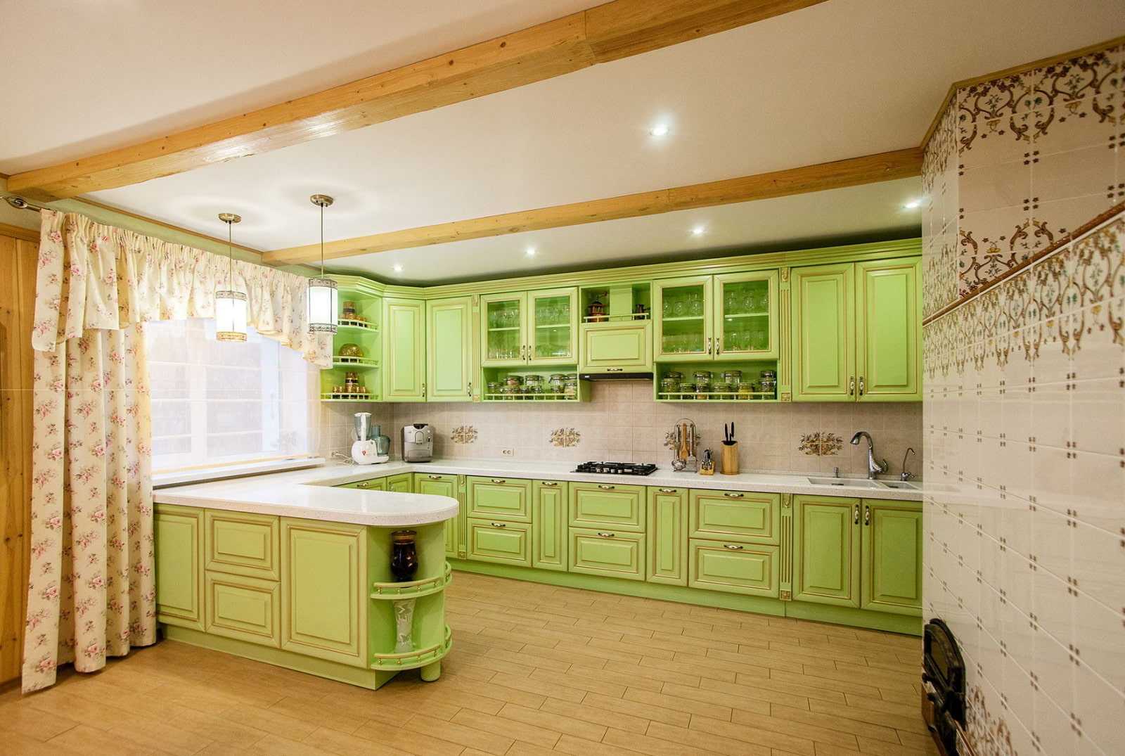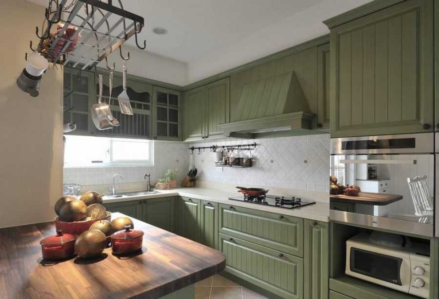 Зеленый цвет в этой кухне создает уютное, спокойное чувство