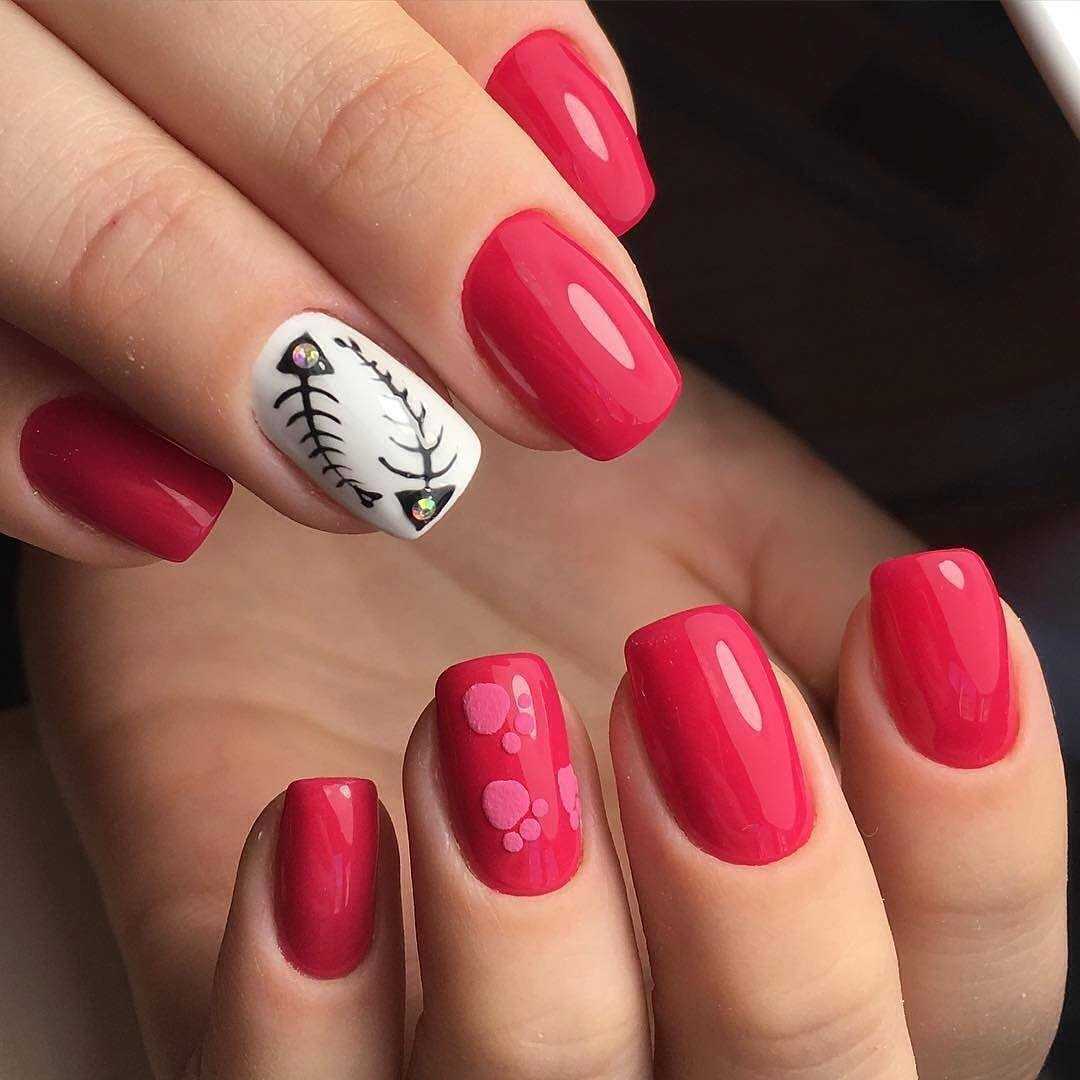 Присмотритесь к французскому маникюру в коралловом и белом цветах. Также отлично смотрится дизайн с кружевом. Узор, также как и в черном цвете, лучше располагать на 1-2 ноготках. При желании дополните коралловый и белый цвет черным оттенком. Используйте темный цвет для выделения геометрического декора.