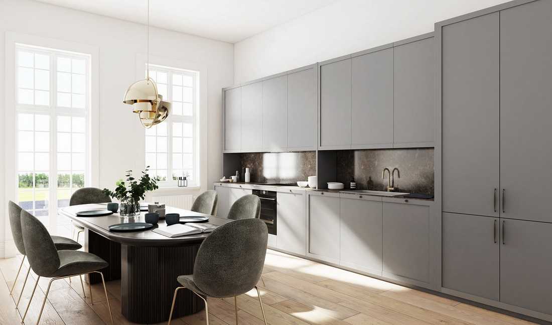 Самыми популярными в 2020 году станут кухни в серых тонах. Это благородный и нейтральный цвет. Он идеально «взаимодействует» с другими более яркими цветами. Элегантный серый создаёт комфорт и положительный настрой.