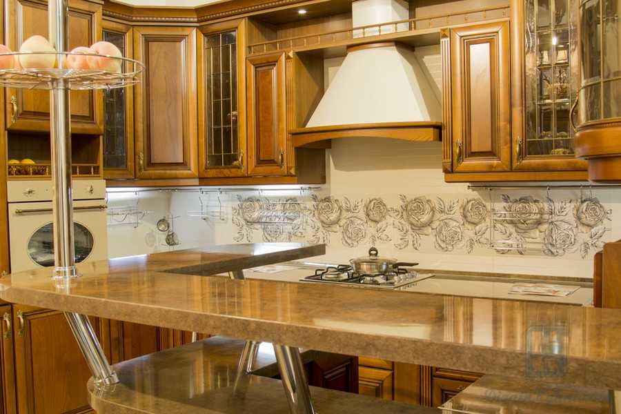 Наиболее обычный вариант фартука — плитка из керамики или мелкая плитка. Не нужно боятся применять фрески, изразцы, многообразные орнаменты. Оригинальные сочетания цветов, многообразные узоры — и такой фартук будет реальным украшением Вашей кухонной комнаты.